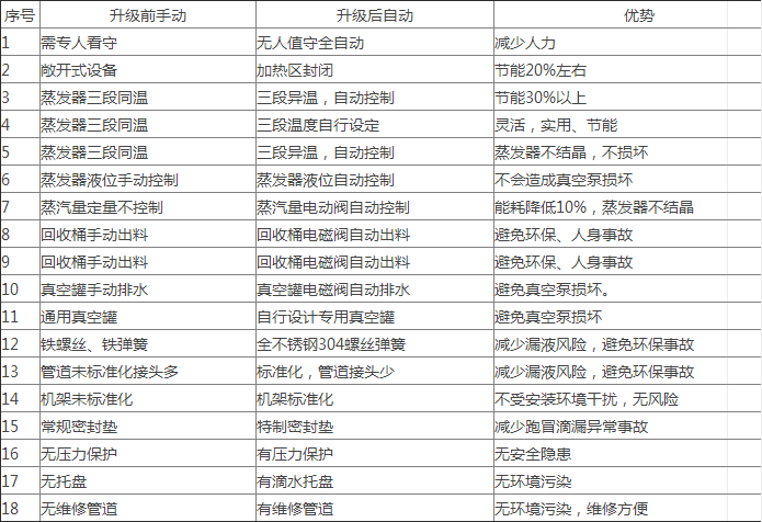 本工藝采用了特殊的真空濃縮水處理技術(shù),配以公司研發(fā)特殊的管路系統(tǒng)和自動控制系統(tǒng),保證了整個(gè)回收系統(tǒng)長期、安全穩(wěn)定地運(yùn)行。此設(shè)備運(yùn)行成本底,損耗能量??;且水質(zhì)穩(wěn)定、節(jié)省費(fèi)用。